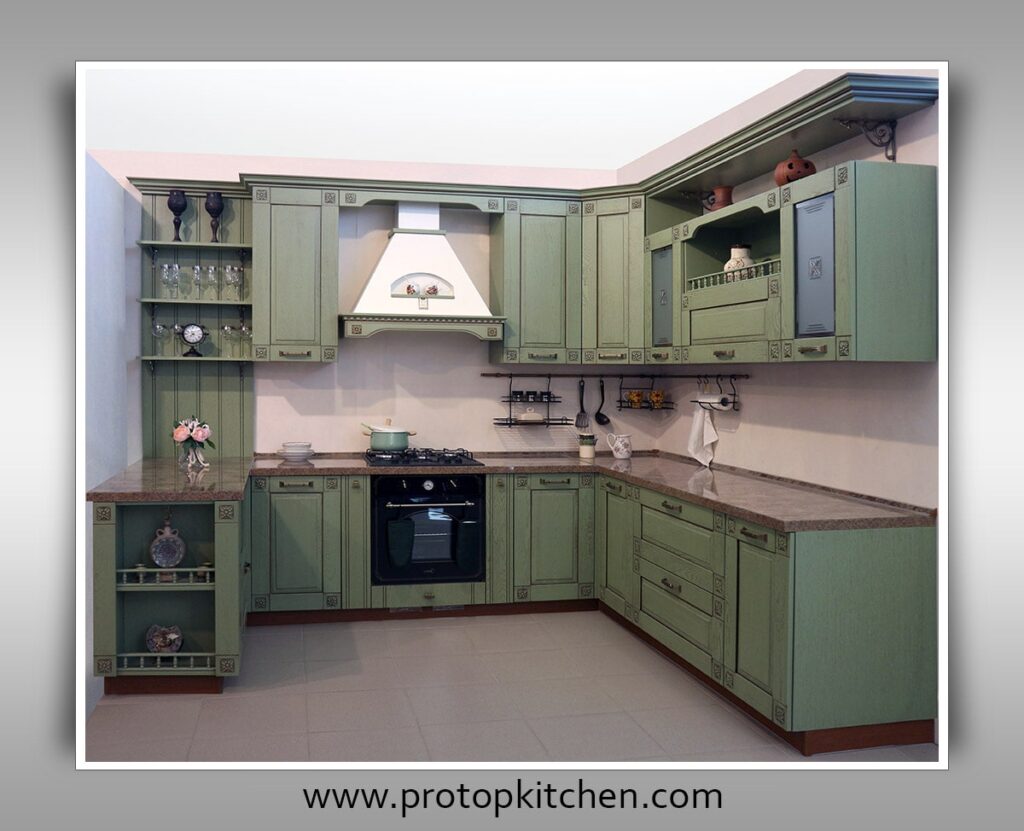 European kitchens are known for their elegant aesthetics, use of rich colors, intricate details, and emphasis on efficient functionality.