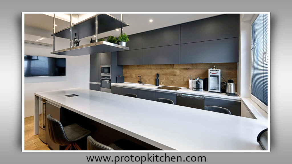 In limited spaces, consider a peninsula extending from one wall to create a semi-open feel and additional counter space.