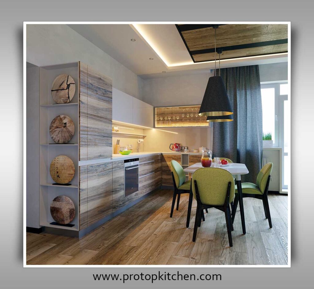 What are some creative design ideas to enhance the aesthetics of an L-shaped kitchen?