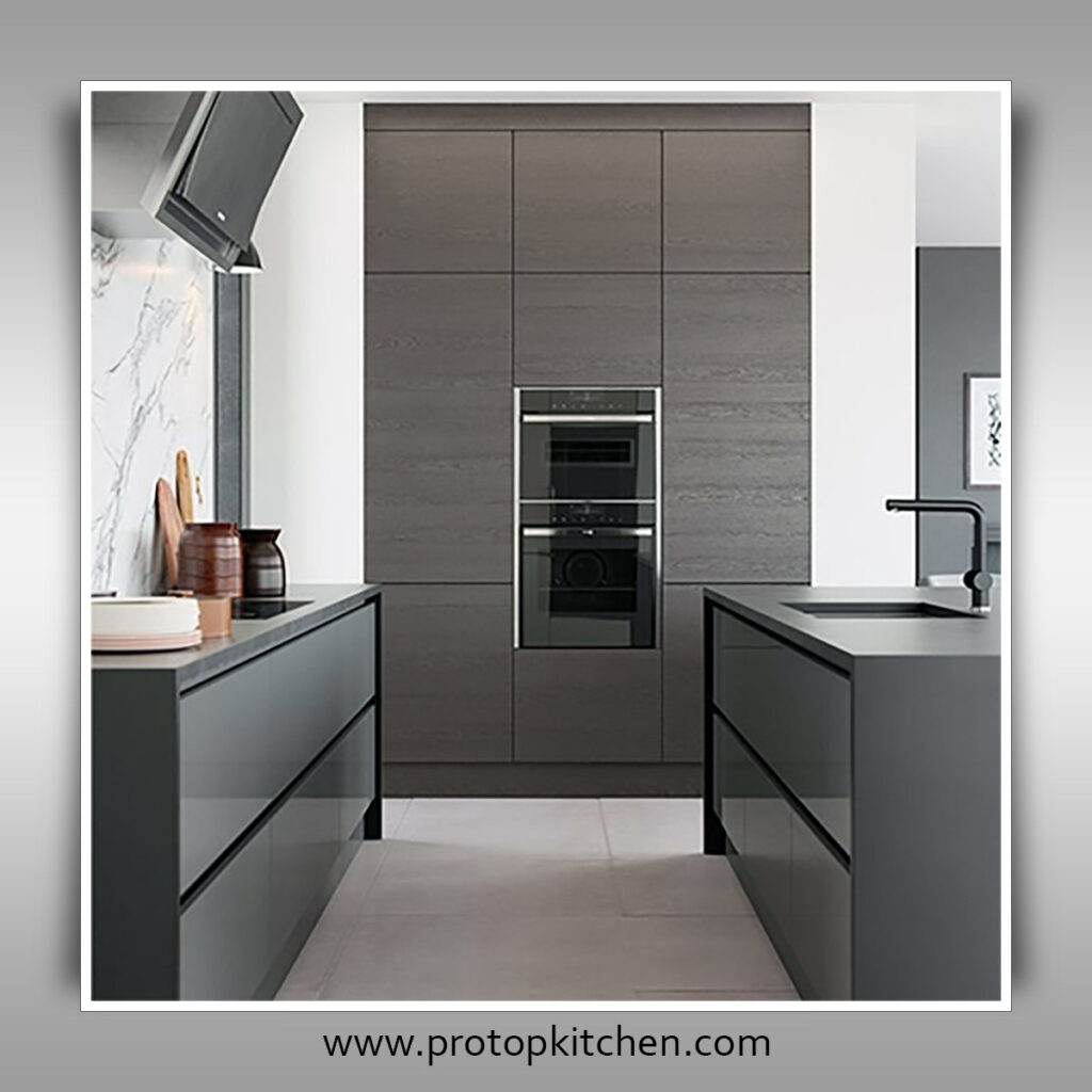 Wood grain matte finishes combine the beauty of natural wood with the benefits of a matte surface. These finishes highlight the wood grain, adding texture and warmth to the kitchen.