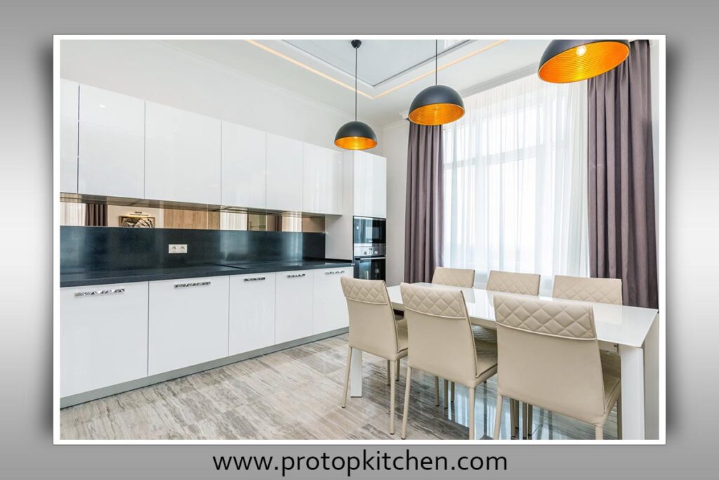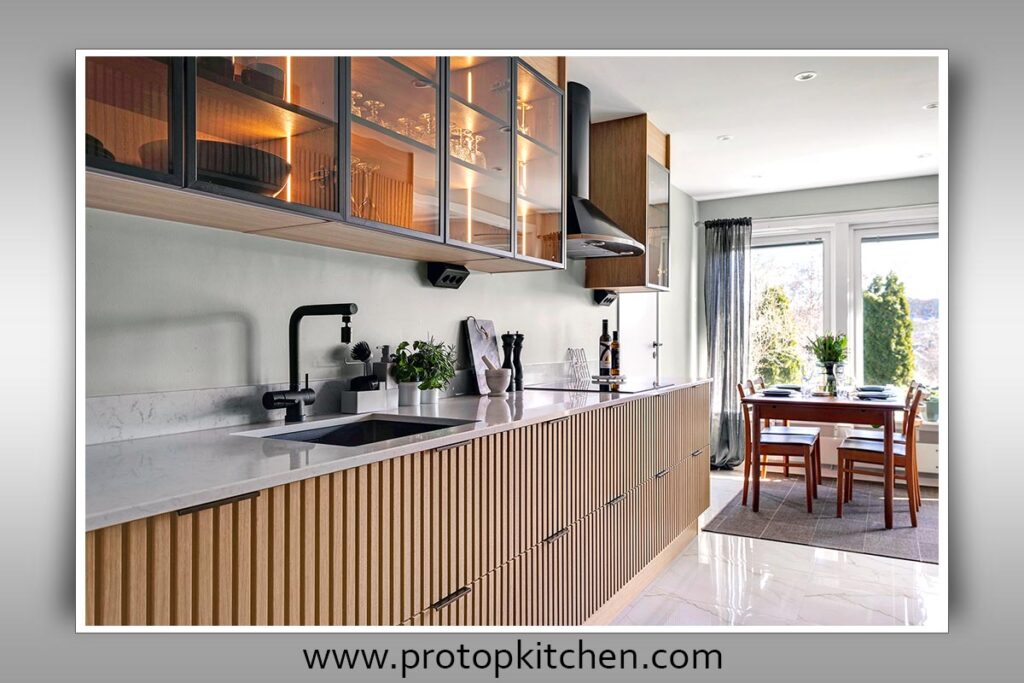 Incorporate a captivating backsplash, use decorative lighting, and introduce stylish hardware for a touch of elegance.