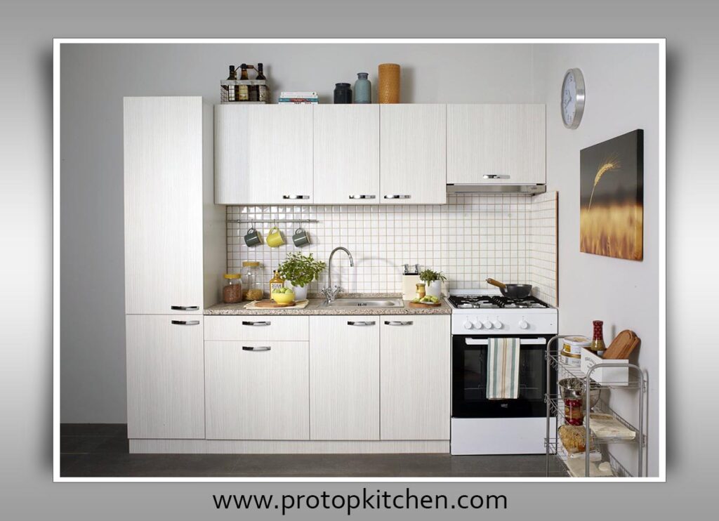 A single-wall layout places all kitchen elements—sink, stove, and refrigerator—along a single wall, creating a streamlined and efficient workspace.